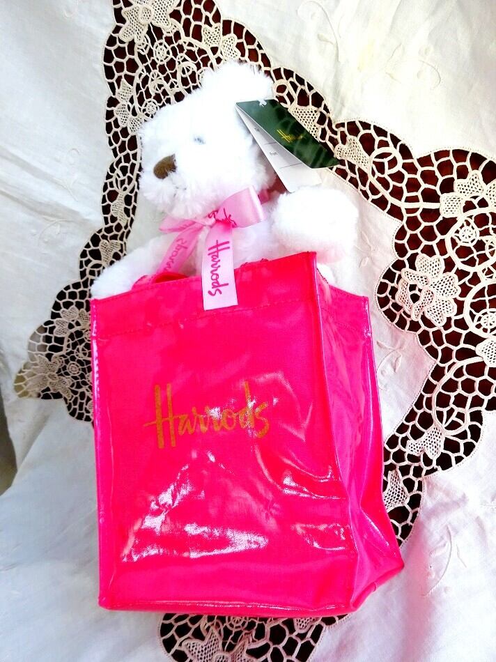 バックの中に入るのは白いこぐまでピンクのHarrodsりぼんを付けています。